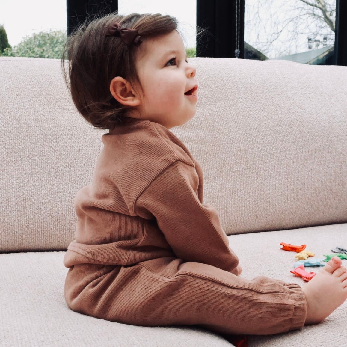 Wrap your little one in comfort with this super-soft, stretchy ribbed cotton set, crafted with simplicity and ease in mind. The long-sleeve top features a classic round neckline and our signature embroidered branding on the left chest, paired with matching bottoms that have an elasticated waistband — gentle on little tummies.