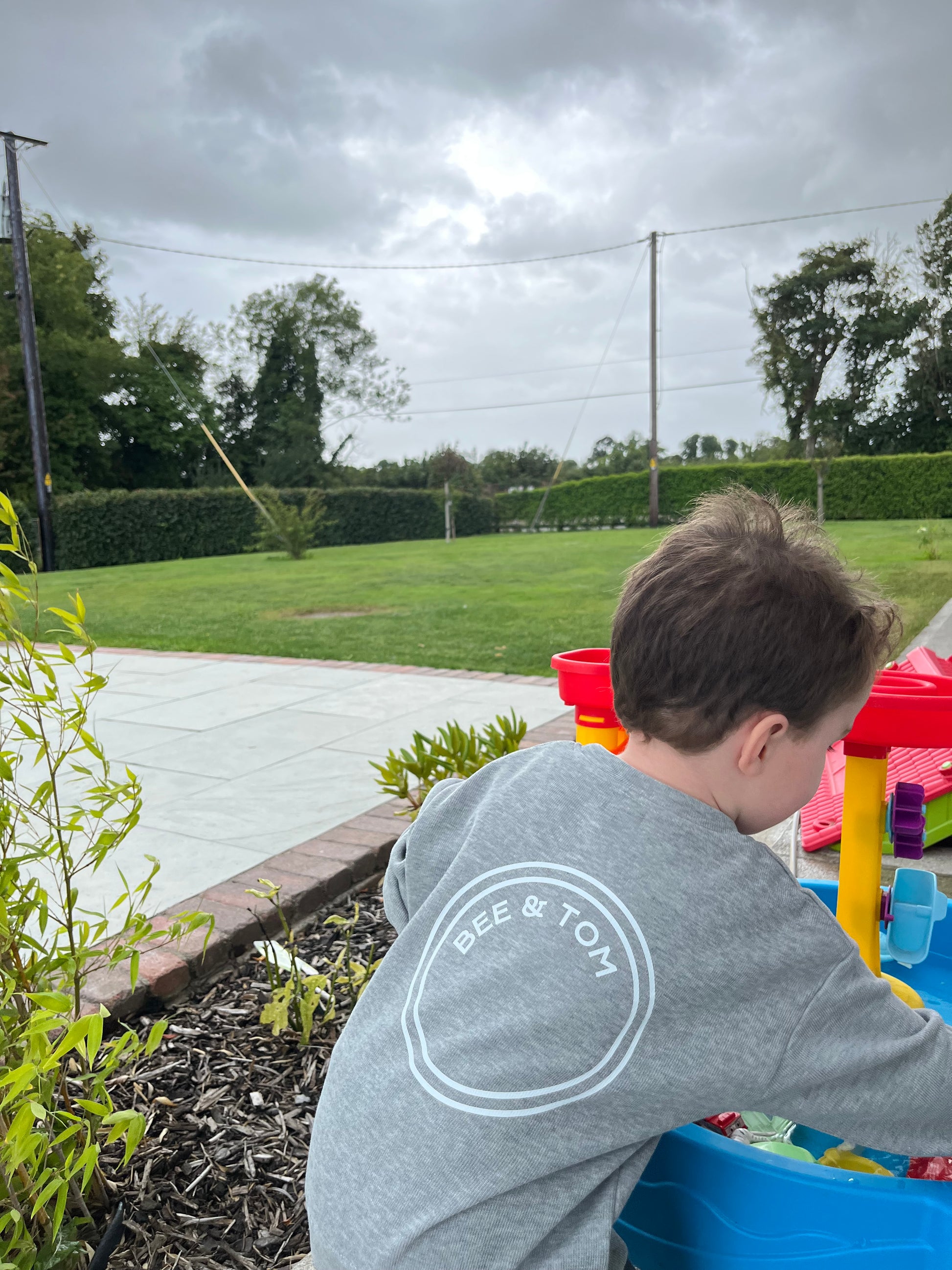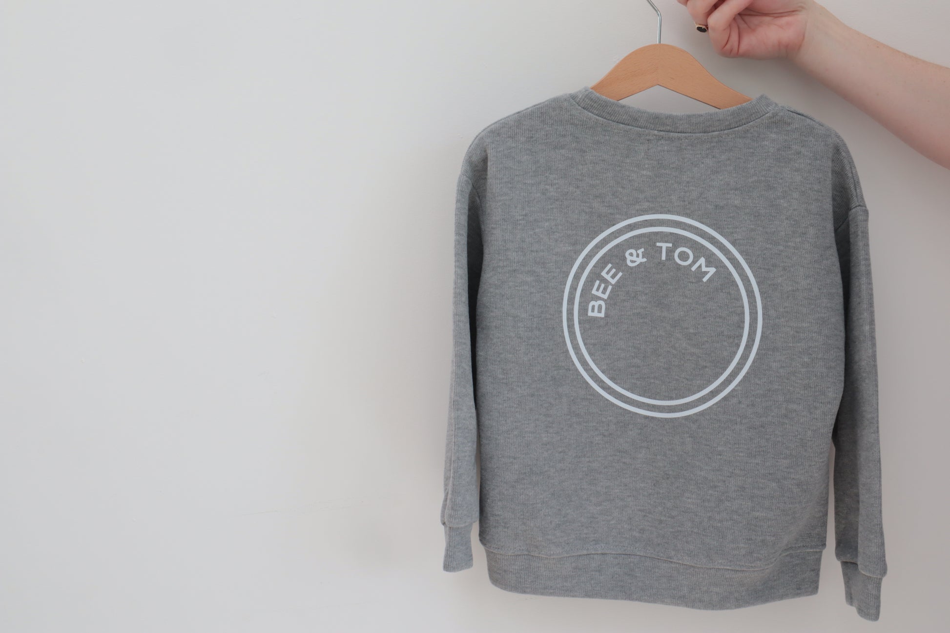 The sweatshirt has a set in sleeve and a deep neck rib. It has our icon printed on the chest that is unique to BEE & TOM . It has our logo printed on the back of the sweatshirt. The bottoms have a deep waistband and elasticated cuffs ! The fabric is super soft!